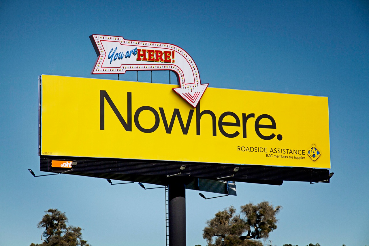 Going for a holiday in country Western Australia is all fun and games until someone has a breakdown. Running into car trouble while driving the long stretches of highway to and from Perth, WA can literally leave you in the middle of nowhere. The Brand Agency, Perth, produced this billboard to remind people that with RAC Roadside Assistance a breakdown won't ruin your trip.
