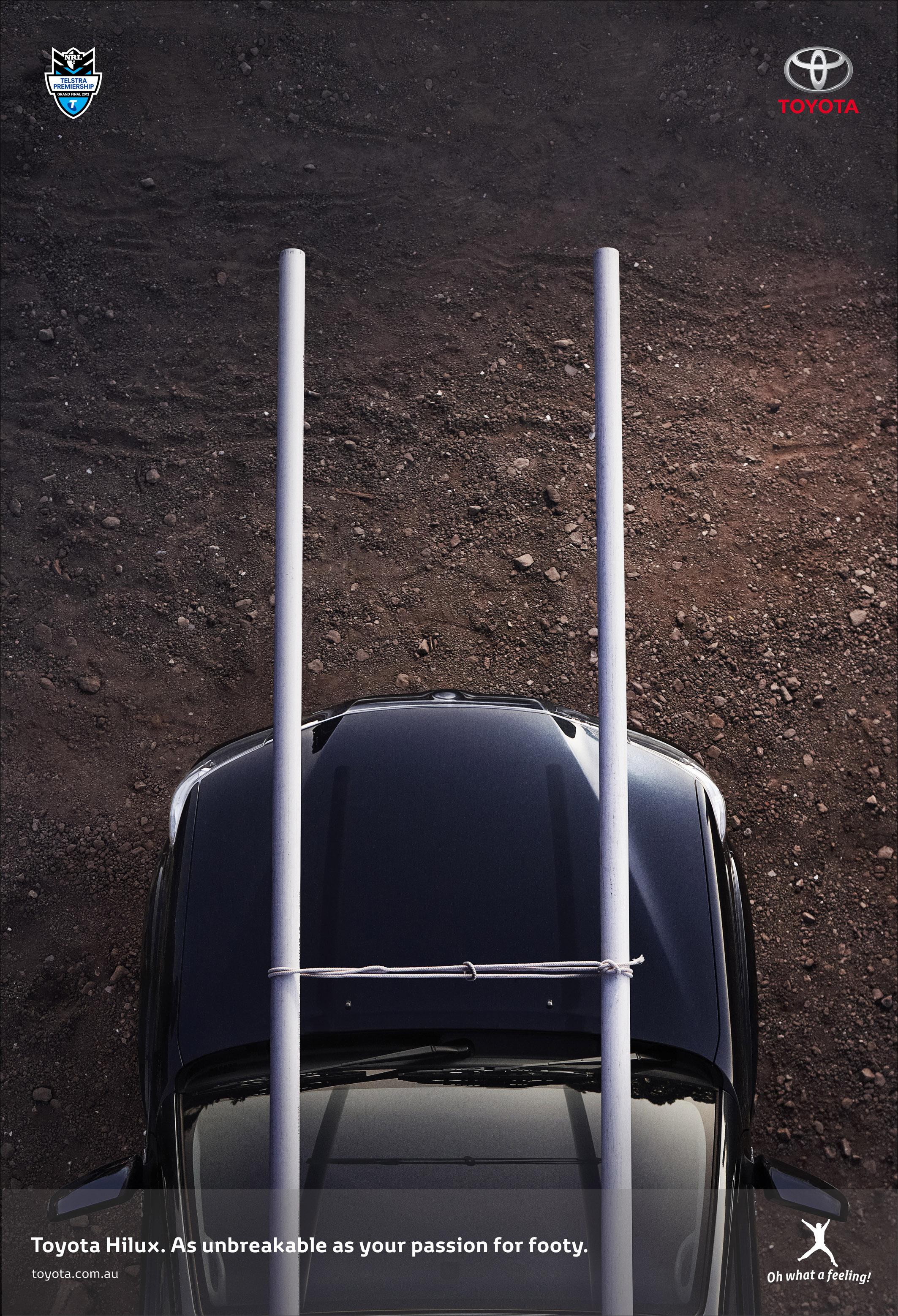 For those who aren't footy fans, this ad depicts the goal post configuration in the National Rugby League (NRL) code.