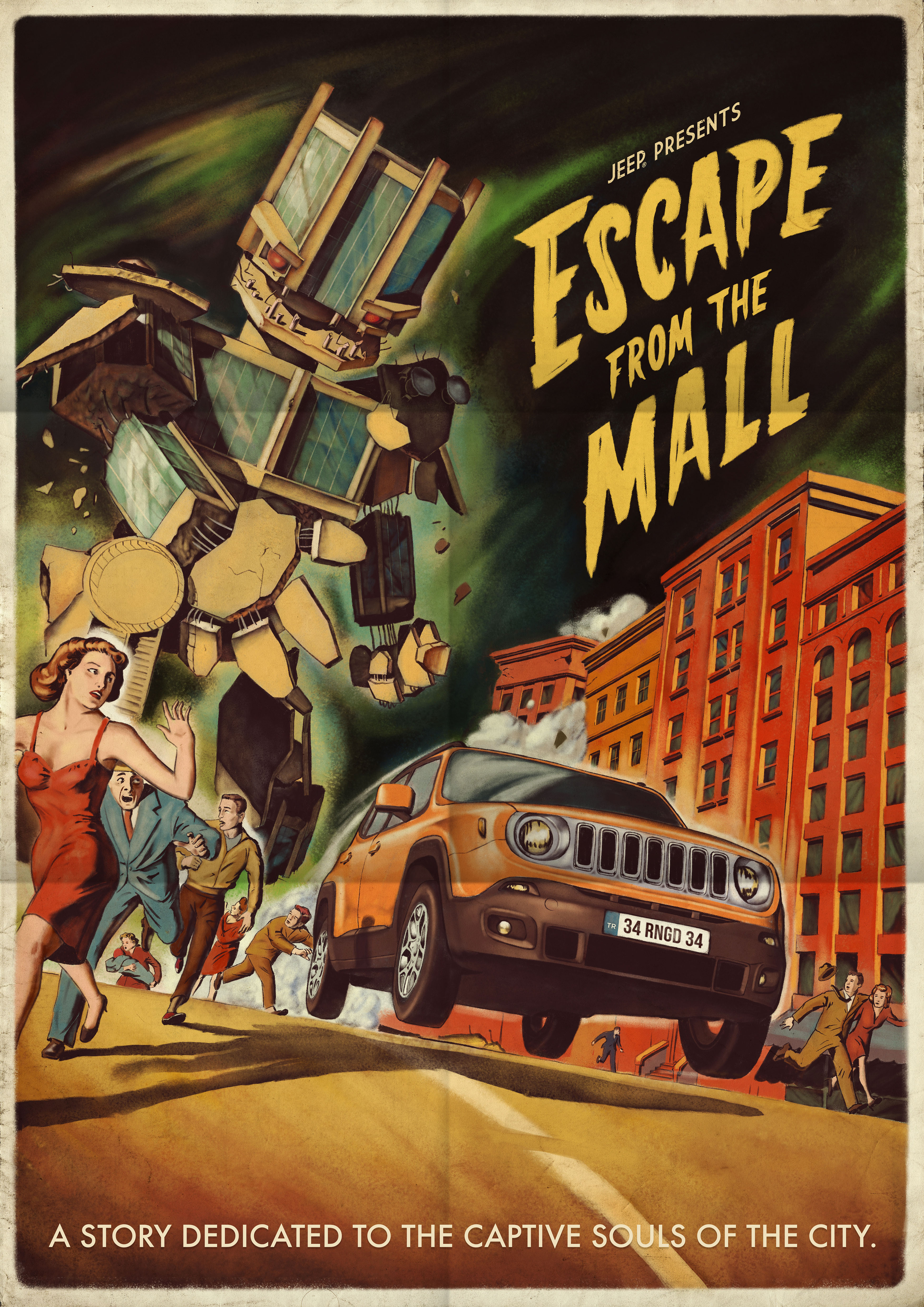 We decided to portrait the characteristics (escape from the city life routines, freedom, being bold) of the JEEP brand. To do so, Leo Burnett, Istanbul, created retro film looking like art work. The campaign was published in the newspapers and also was published as outdoor.