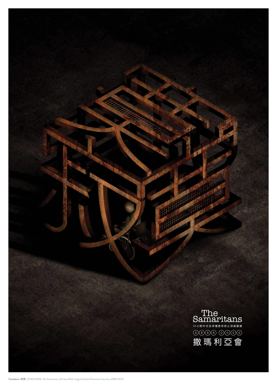For those suffering from depression it can feel like they are in a cage, trapped by their inability to speak. To get the phone ringing for The Samaritans Hong Kong Ogilvy & Mather commissioned Jordan Metcalf the famed typographer to craft three unique works. Each execution using Chinese characters for'Helplessness', 'Loneliness'and 'Hopelessness' that visually form cages.