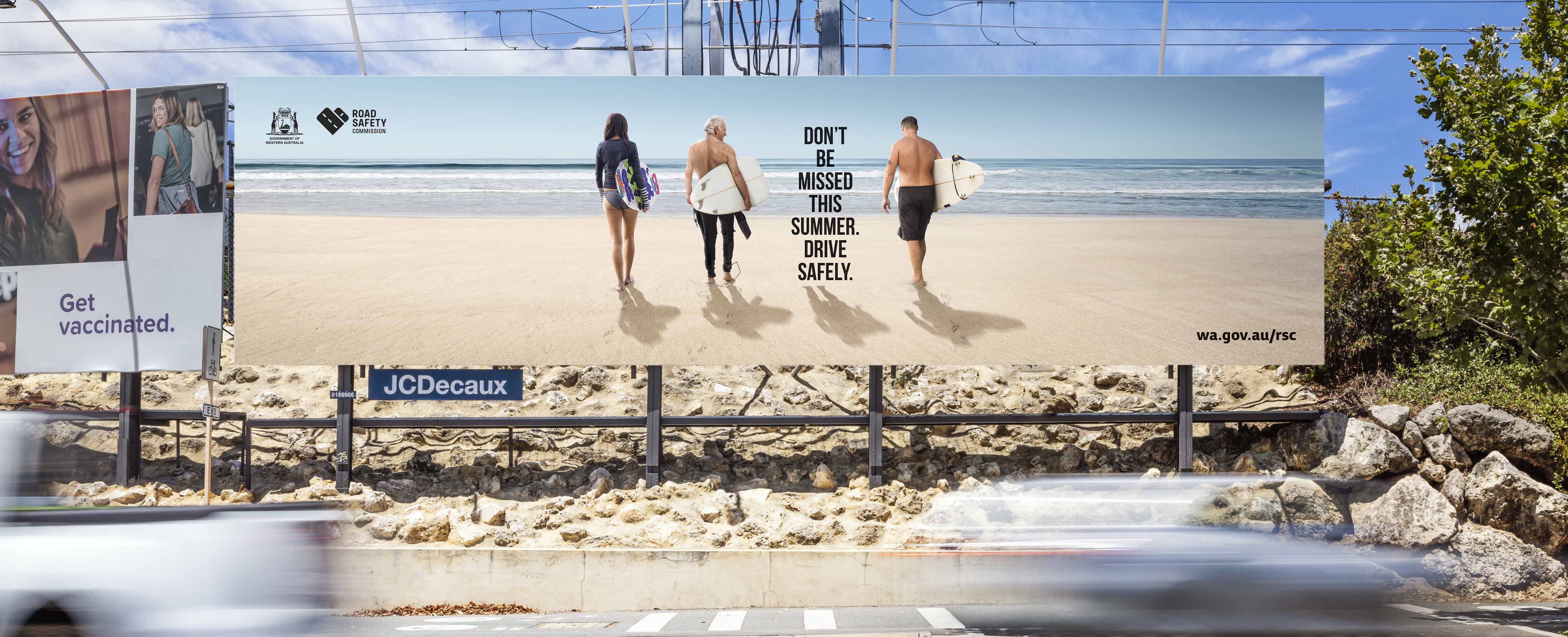 The festive season is colloquially known as 'the silly season' for good reason - Christmas parties, holidays, and jubilant catch-ups. Unfortunately, it's also the season that sees an upswing in silly mistakes being made on our roads. To bring this to the fore of WA road users' minds, we launched a series of billboards on the way to the beach, the pool and bars that depicted people engaged in common summer activities. With one person missing, leaving only a shadow, the message was clear: don't be missed this season.