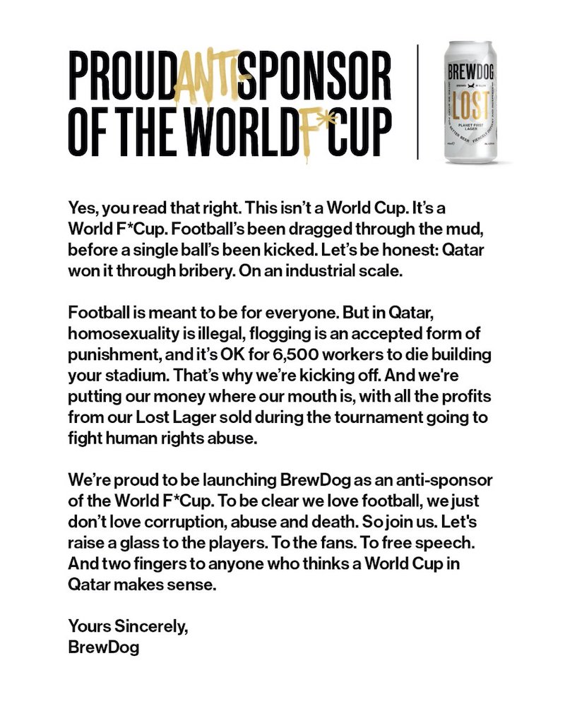BrewDog: Pround Anti Sponsor of the World F*Cup![]() Top 6: November 16th 2022