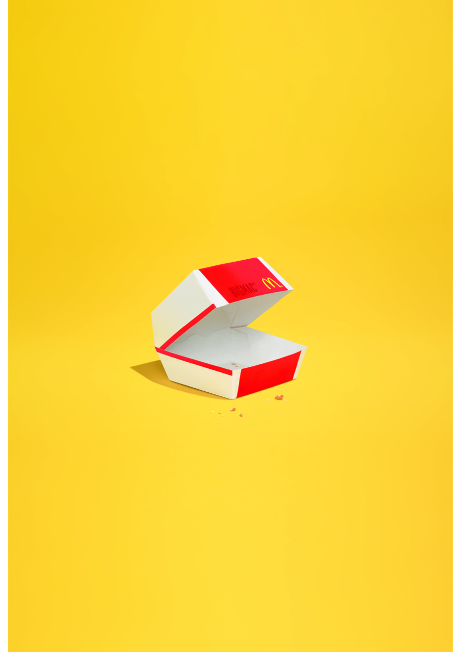 Now, it’s packagings time. Once again, McDonald’s is craving for some minimalist graphics of its packagings thanks to this triptych, which renew ties with the irresistible classics of the permanent range. These products are so good that in the end, there is only one crumb left of it. The campaign is available with 3 of the most emblematic menu items – the "Big Mac," "Nuggets" and "French Fries."