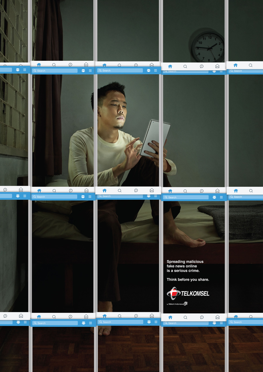 In this digital age, the impact of fake news has become a worldwide phenomenon. It reaches an unprecedented height during the 2016 US election, and it's been one of the most talk-about issue in most mainstream media. Indonesia, the 4th most populous country in the world with an equally large digitally savvy population, fake news is prevalent and has a negative impact on the society. It played a part in several civil unrest and caused confusion during times of crisis. Even though spreading malicious fake news online is punishable by Indonesian law, enforcement and prosecution proves difficult. Hakuhodo Indonesia, together with Telkomssel, one of the largest telecommunication company in Indonesia, set out to educate the public about the seriousness of this offense by launching the 'Fake News' campaign.